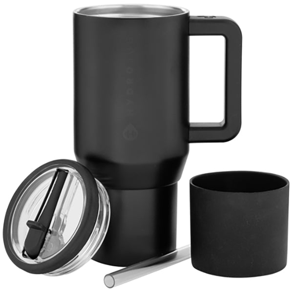 Choose your custom color with the HydroJug Black 20oz Traveler to make sure your favorite beverage is always within reach. This stainless steel thermal mug is perfect for the morning commute, sitting at the office, or hanging out with the family. Order several to give as gifts to family, friends, or even clients.Highlights