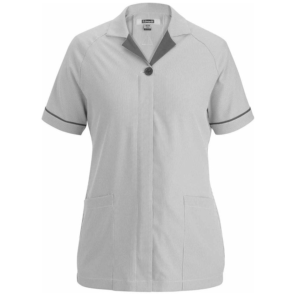 Add a company logo to the Edwards Women's Steel Grey Pincord Pincord Ultra-Stretch Tunic for a look that will keep those in the service industry and many others looking their best. This midweight tunic is made of 100% polyester ultra-stretch pincord with a traditional fit and open collar. The hidden zipper placket completes the look and two large patch pockets, key ring loops, and side vents make it a convenience at the highest levels. Ideal as a uniform that can be worn over almost anything and still look great, the moisture wicking tunic is a true must-have.Highlights