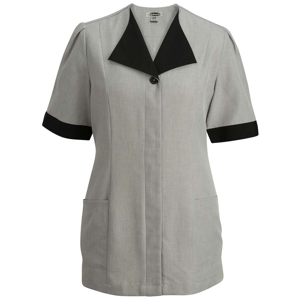 Employee apparel for housekeepers has never looked better than with the Edwards Women's Platinum Pinnacle Tunic Shirt in six color options with contrasting collar, cuff, and button placket. Created from 100% polyester, this tunic shirt has all the features needed for a long day of housekeeping duties. The low pill fabric that is shrink, wrinkle, and fade resistant means that even the worst jobs do not stand a chance with this corporate embroidered shirt. Excellent as part of corporate uniforms, these short sleeve, two pocket shirts are easily machine laundered so that they are ready for the next shift.