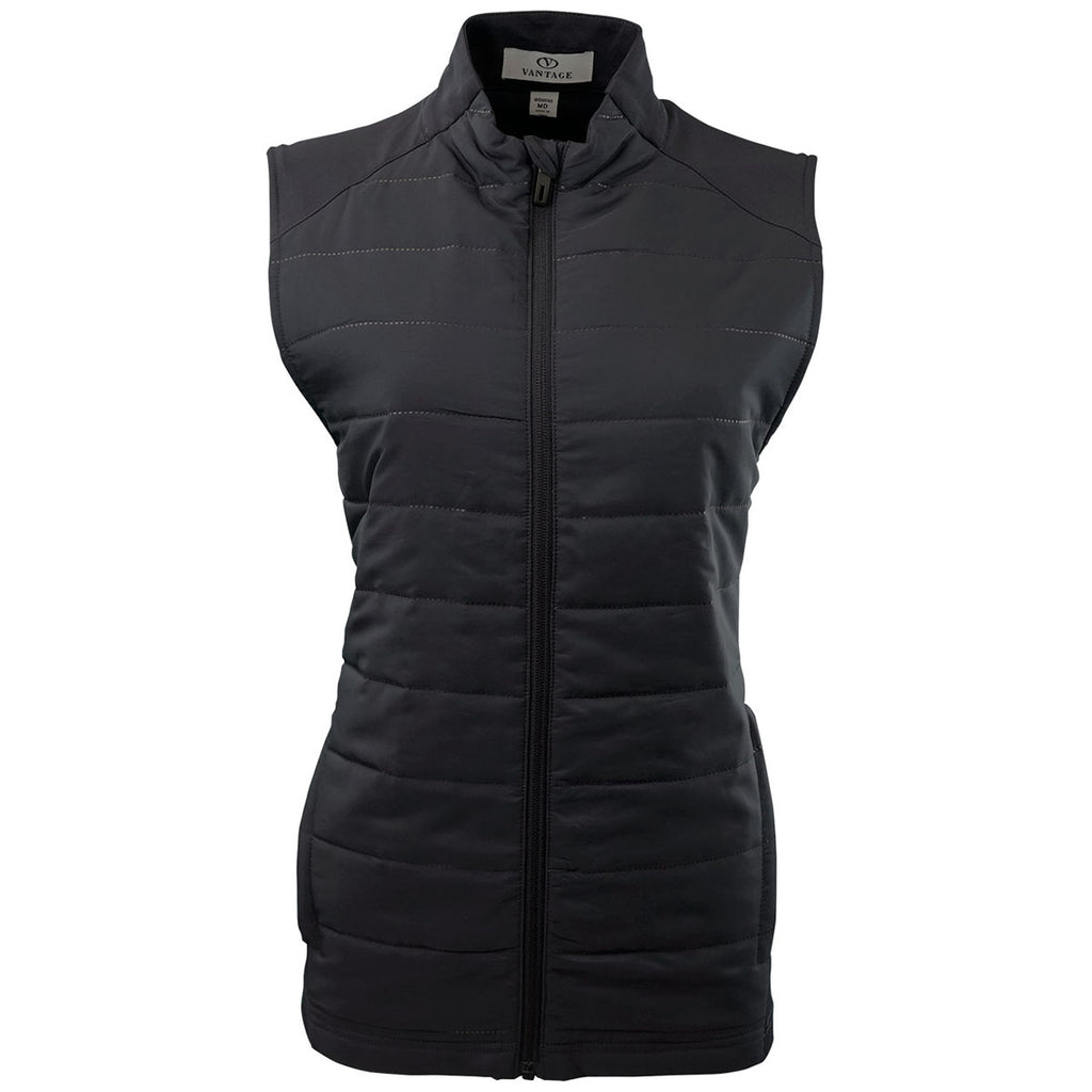 Choose your embroidery for the Vantage Women's Black Ninja Vest to create a comfortable and functional look that is ready for adventure. The quilted vest is ideal for hiking, biking, or the morning commute. The full zip front makes this easy to layer over your favorite long-sleeve tee or sweater as needed. Order today.
