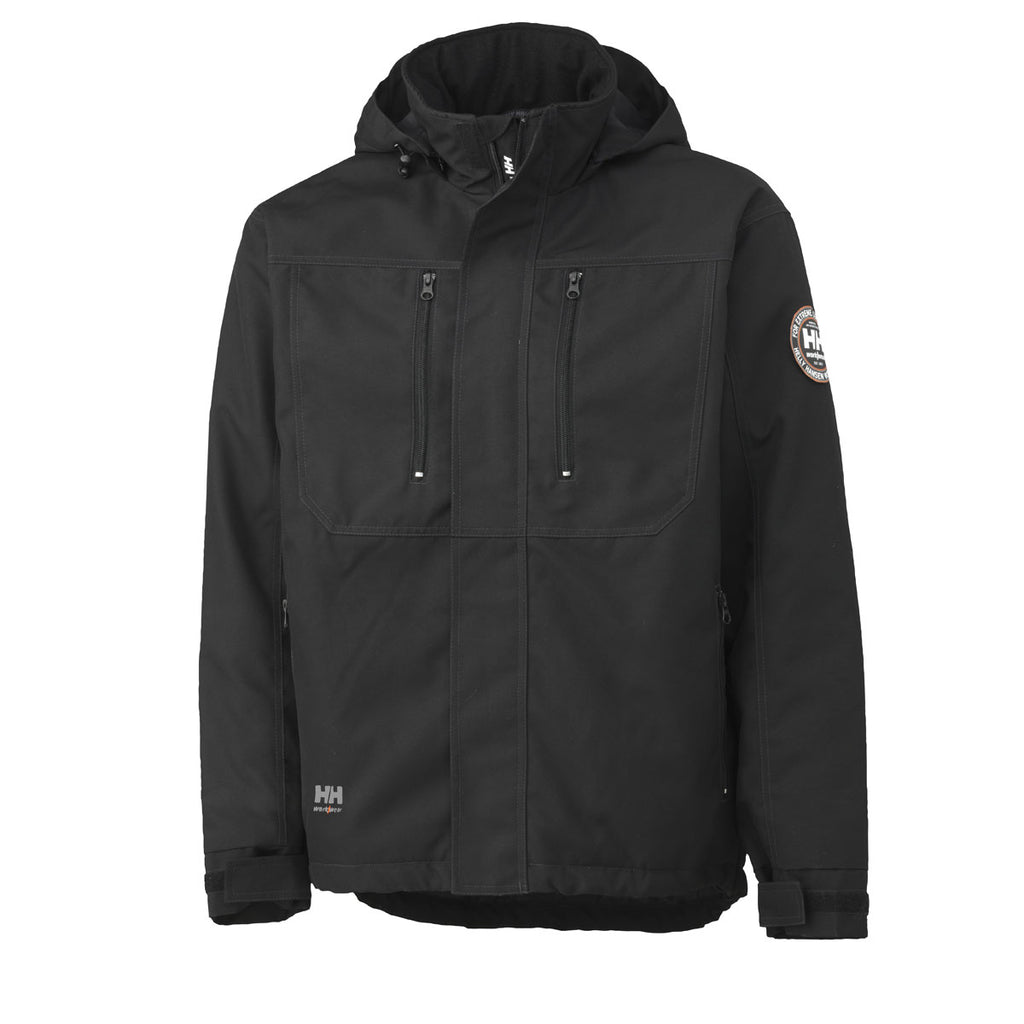 The company logo Helly Hansen Men's Black Berg Jacket offers exceptional features in one must-have outerwear item. Some of the included features you'll find with the men's Berg jacket include an attached hood with drawstrings, multiple zippered pockets, adjustable sleeve cuffs, and covered front closure. This employee apparel item is well-constructed and sure to keep your employees warm and comfortable outside in the elements. Add a company logo for the perfect final touch and you have a jacket which all of your employees will be excited to wear.