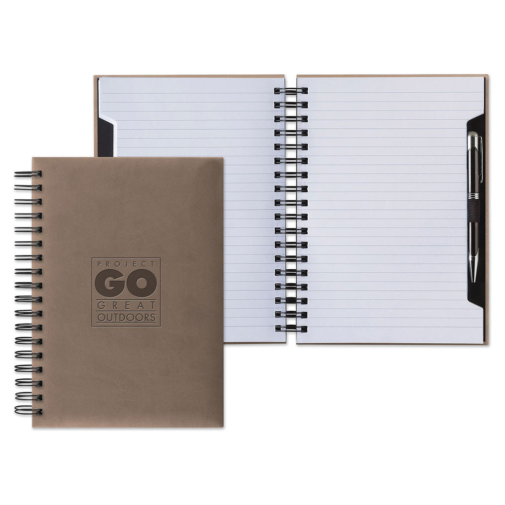 Ensure your company's employees and customers are thrilled beyond "words" on their journals with the Castelli Taupe Tucson Scribe Wire Journal! It flaunts a cover with smooth soft texture that looks like genuine leather. Features include 288 white pages printed in modern grey, pen loop, inserted pen, and a silver ribbon marker. Customize it with your brand name or logo to show customers you mean business.The minimum order for this product is 100 pieces.