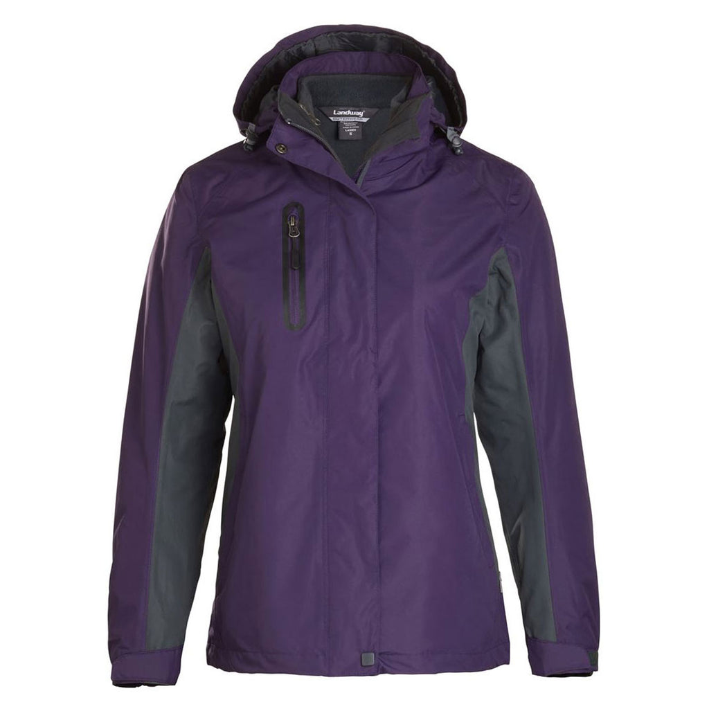 Discover your fashionable path by ordering the embroidered Landway Women's Purple Pathfinder 3-in-1 Parka. Designed with a full front storm flap and closure, the ultimate winter coat repels water to ensure you remain comfortably dry throughout a cold weather weekend camping trip. Polyester microfleece lining acts as an extra layer of insulation that traps body heat. Attach and zip up the three-panel hood to protect your head and neck from icy winter blasts. Adjustable cuffs prevent cold air from moving up the arms. Add a custom logo to turn the warm parka into a powerful marketing platform.Highlights
