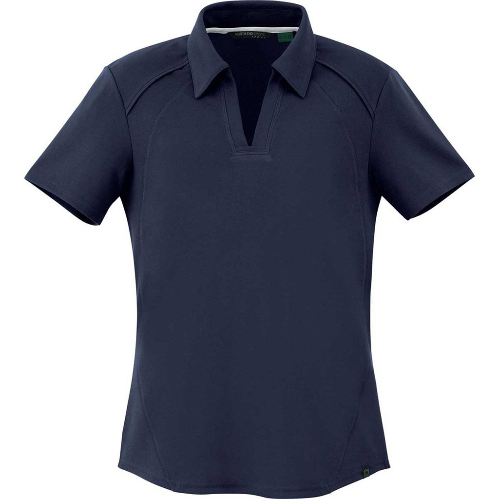 Self-fabric flat piping located along the front yoke seams enhances the style of the North End Women's Night Performance Pique Polo. More than one-half of this polo contains to make a strong eco-friendly fashion statement. Forty-six percent yarn wicking polyester pique ensures you enjoy the polo as often as you like. Moisture wicking technology keeps you cool under pressure, while ultraviolet protection ensures your skin remains healthy. Add a custom logo to the large chest area for promoting your company at civic events. The North End Women's Night Performance Pique Polo provides fashion versatility.Corresponding Men's Style: North End Men's Night Recycled Polyester Performance Pique Polo