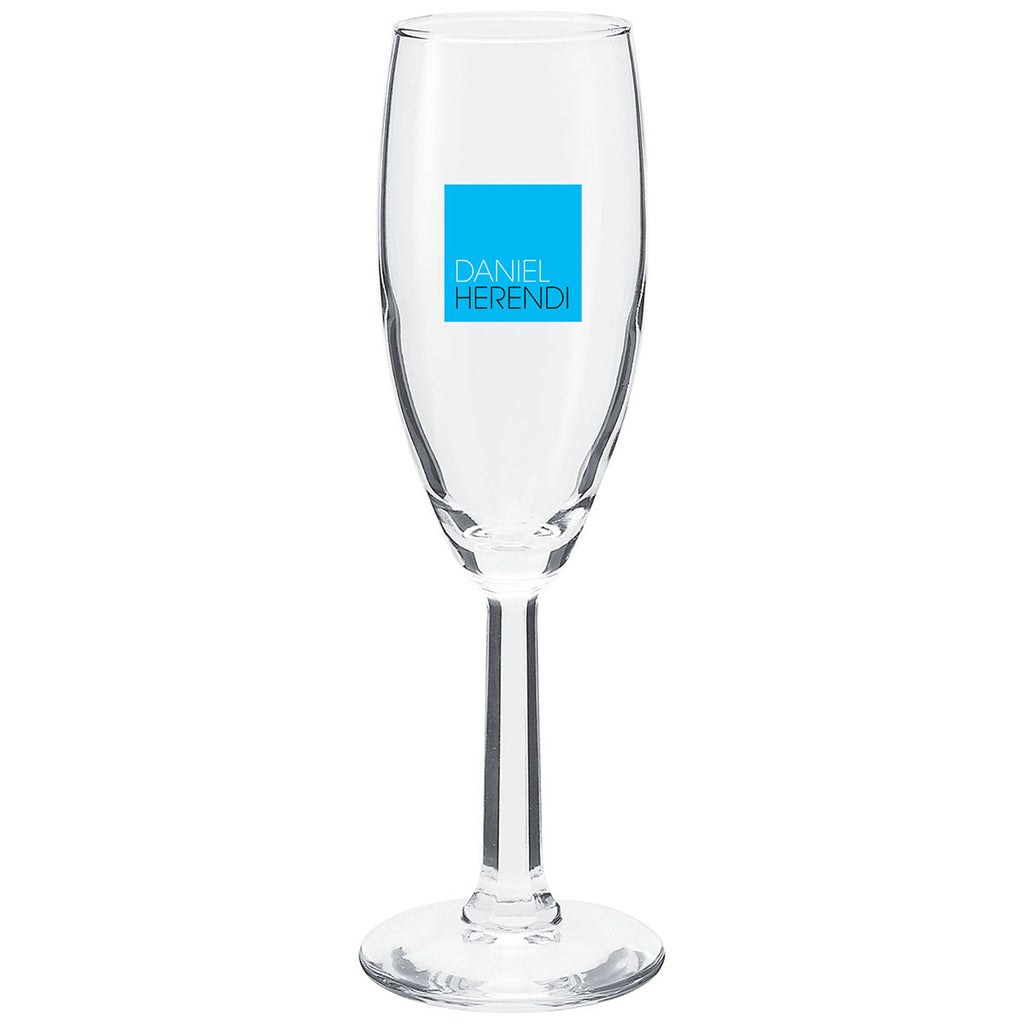 Cheers to your company's success by adding your company's custom logo or design to the ETS Clear 5.75 oz Napa Glass Flute. Ideal for corporate events, celebrations, or other special gatherings, it will ensure your brand always gets the attention it deserves during a big champagne toast.