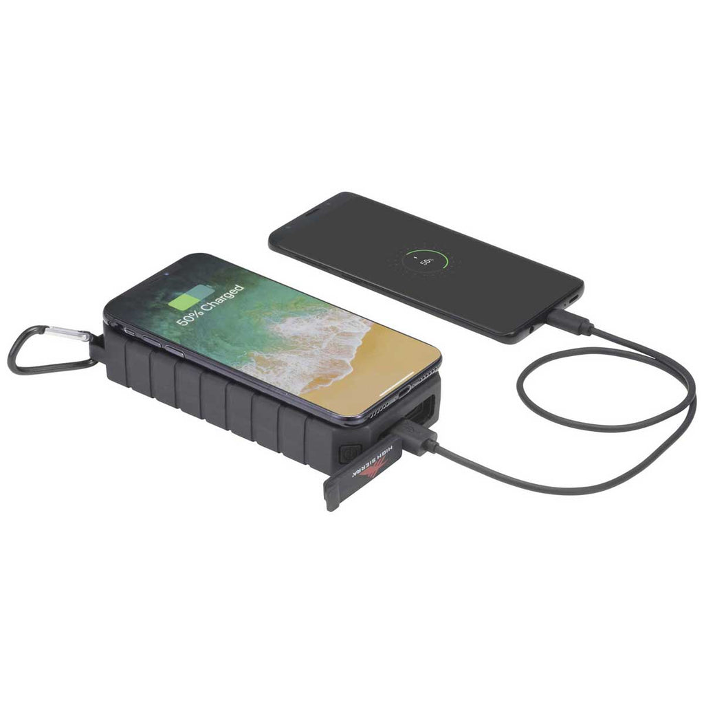 Special company fairs? Prep up this High Sierra Black IPX 5 Solar Fast Wireless Power Bank with your custom logo or name and it'll be the perfect event giveaway, whether it's a trade show or a tech-related event. The IPX 5 can work as a charging pad for wireless-capable devices or as a handy power bank that you can carry on the go - not to mention, the charger's also equipped with a waterproof shield!