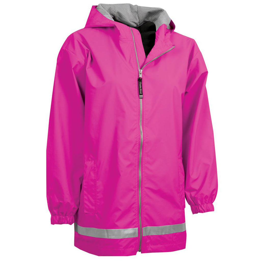 The Charles River Youth Hot Pink/Reflective New Englander Rain Jacket can keep your children warm and dry, and with your company's custom logo, it also can help your children and your employee's children dress like mom and dad. Your business could order a logoed supply of this custom apparel to hand out as employee gifts that could then be gifted to the children. This custom clothing is available in a wide variety of colors, so regardless of your logo's design; there's sure to be a complementary color. Your company's logo being worn in schoolyards and playgrounds will introduce your brand to a new generation of potential customers.Highlights