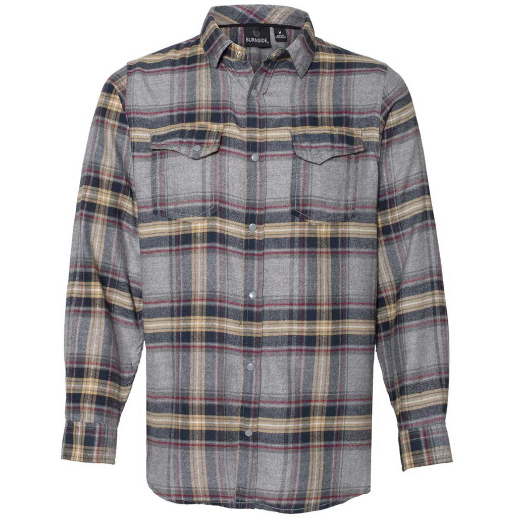 Build your custom look with a Burnside Men's Light Grey Snap Front Long Sleeve Plaid Flannel Shirt in three color options. The cotton, polyester blend is easy to wear or layer with snap closure front, two chest pockets with snaps, and snap cuffs. The half back yoke and modern fit will look amazing with a custom logo that is then used as part of employee apparel for a variety of jobs. The plaid is on point for outdoor events or as work wear with embroidery in your choice of design. Place your order for a few or for many today to update your look on the job or at home.Highlights