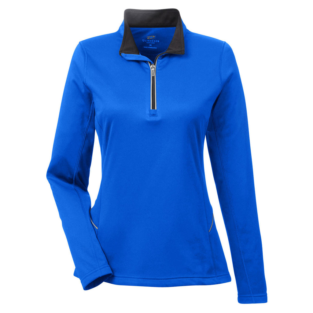 UltraClub Women's Kyanos Blue Cool & Dry Sport Quarter-Zip Pullover