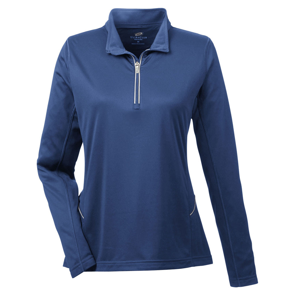 UltraClub Women's Navy Cool & Dry Sport Quarter-Zip Pullover