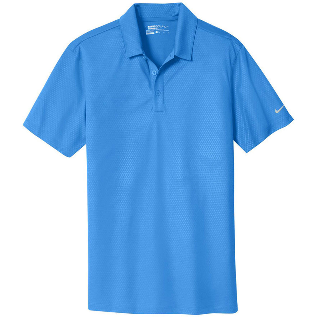The company that invented the Swoosh heard throughout the world has produced an extensive line of versatile polos that cover all of the fashion bases. Nike Men's Brisk Blue Golf Dri-FIT Embossed Tri-Blade Polo Dri-FIT technology ensures you enjoy supreme comfort, whether you're smacking a tennis ball down the baseline or swinging a golf club to reach a green in two. Design elements that turn heads include a self-fabric collar and a three-button placket. One hundred percent polyester endures the punishment absorbed by high-caliber athletic competitions. Attach your corporate logo to the polos to create more buzz about your company at sporting events.