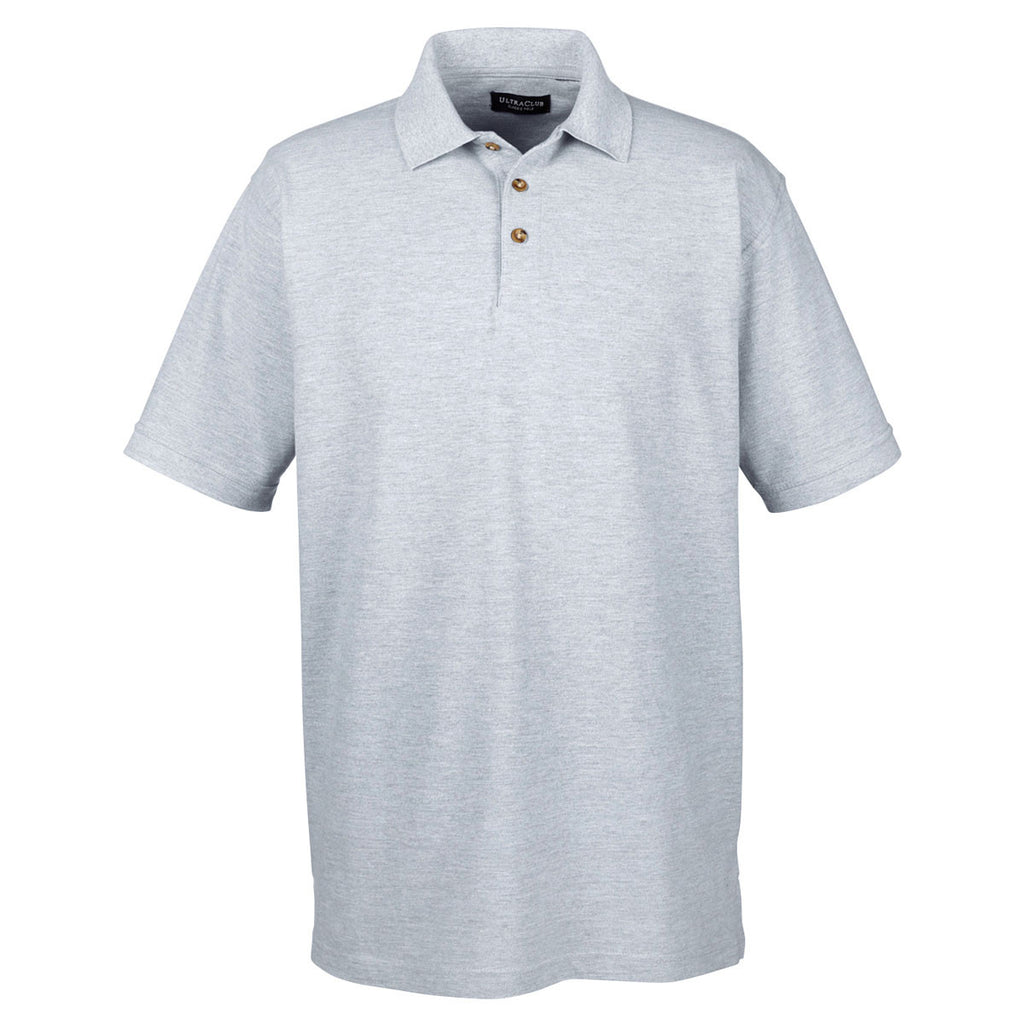 UltraClub Men's Heather Grey Classic Pique Polo