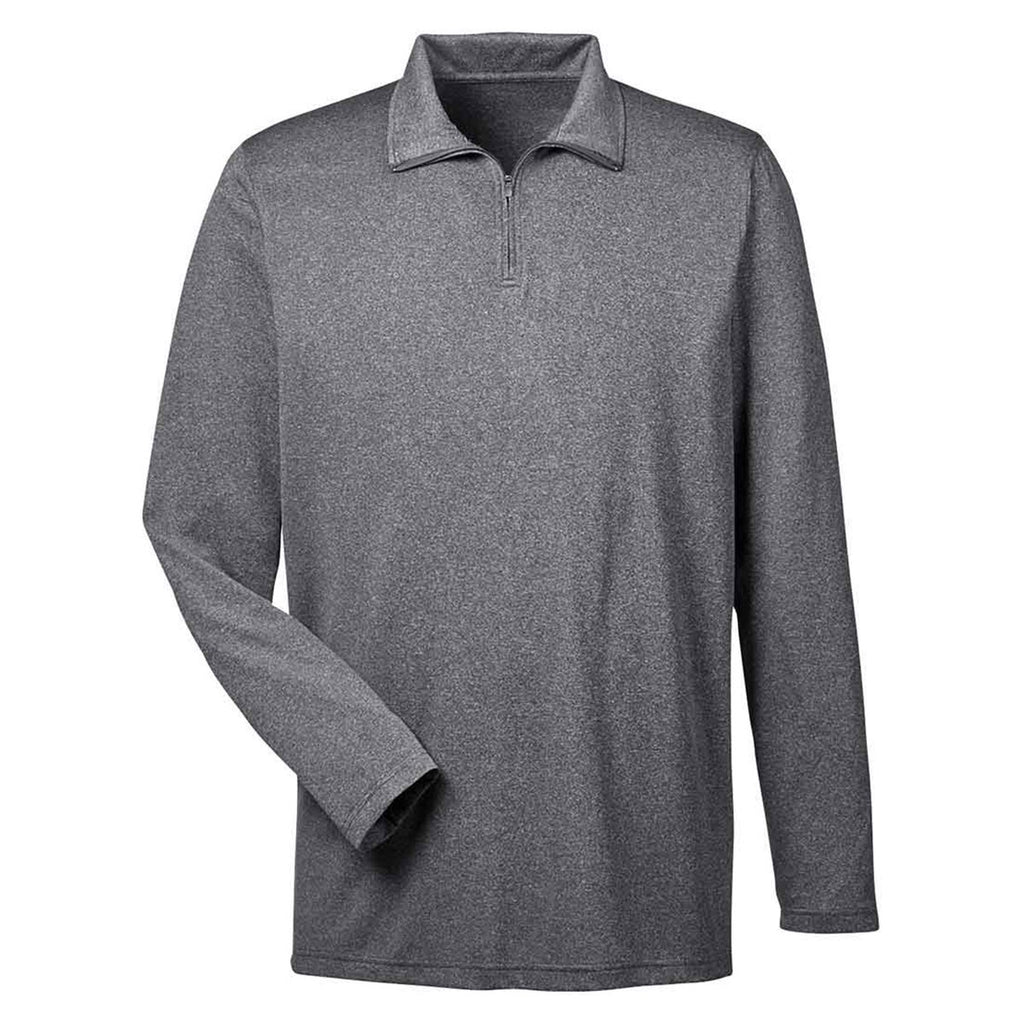For the ultimate casual wear look, go with the UltraClub Men's Black Heather Cool & Dry Heathered Performance Quarter-Zip. The stylish center front coil zipper and semi auto lock slide puts the performance quarter-zip in a fashion class of its own. Moisture wicking technology quickly absorbs and removes perspiration to ensure supreme comfort throughout your hectic day. One-hundred percent snag-proof heathered polyester resists the types of rips and tears that send other quarter-zips to thrift stores. The back neck tape creates a clean design finish for the sleek upper garment. Attach your corporate logo to reach the potential customers you meet at professional networking events.Corresponding Women's Style:UltraClub Women's Black Heather Cool & Dry Heathered Performance Quarter-Zip
