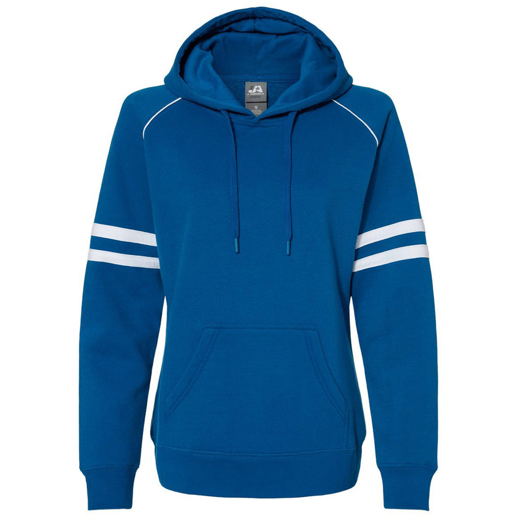 J. America Women's Royal Varsity Fleece Piped Hooded Sweatshirt