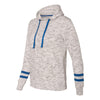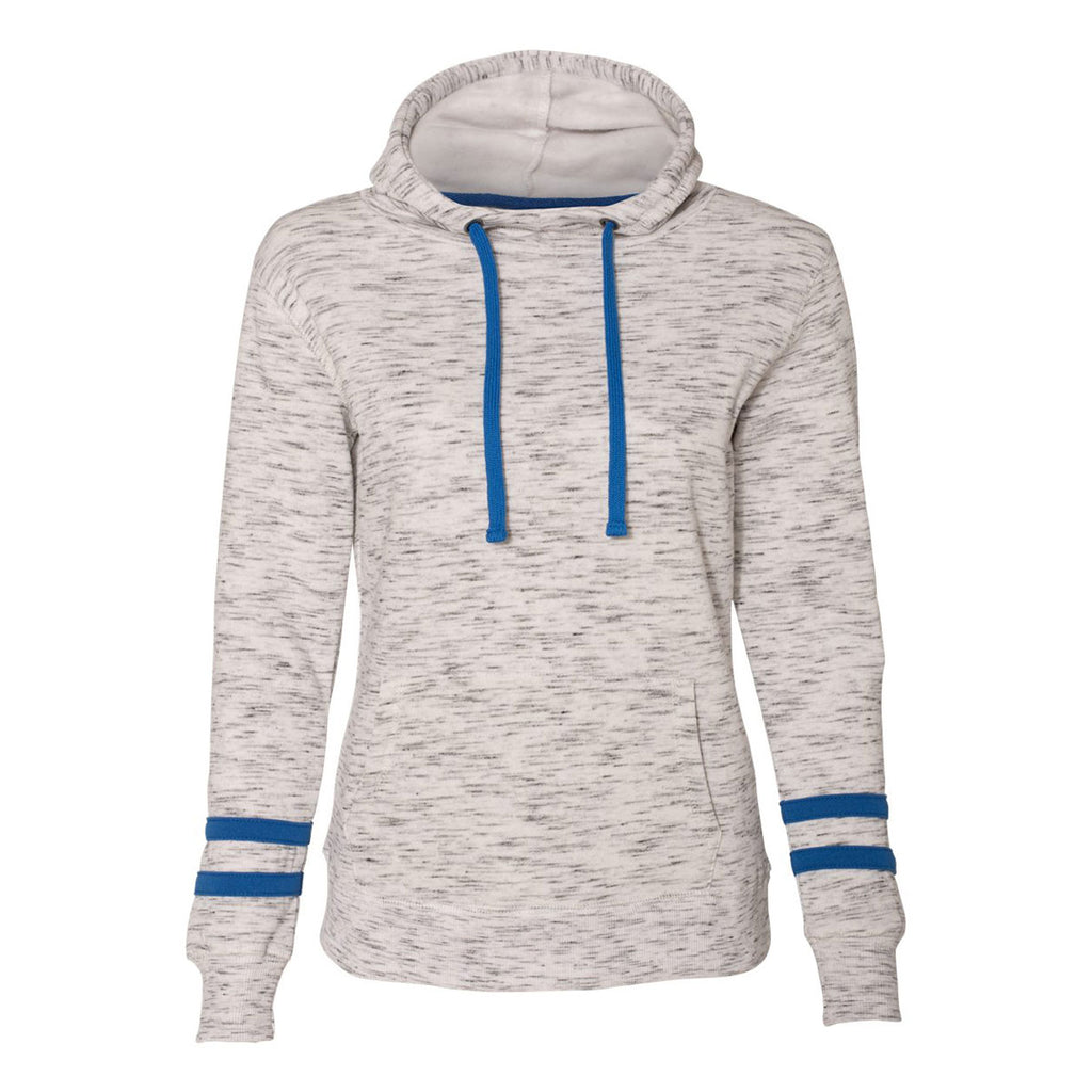 J. America Women's White/Royal Melange Fleece Striped Sleeve Hooded Pullover