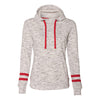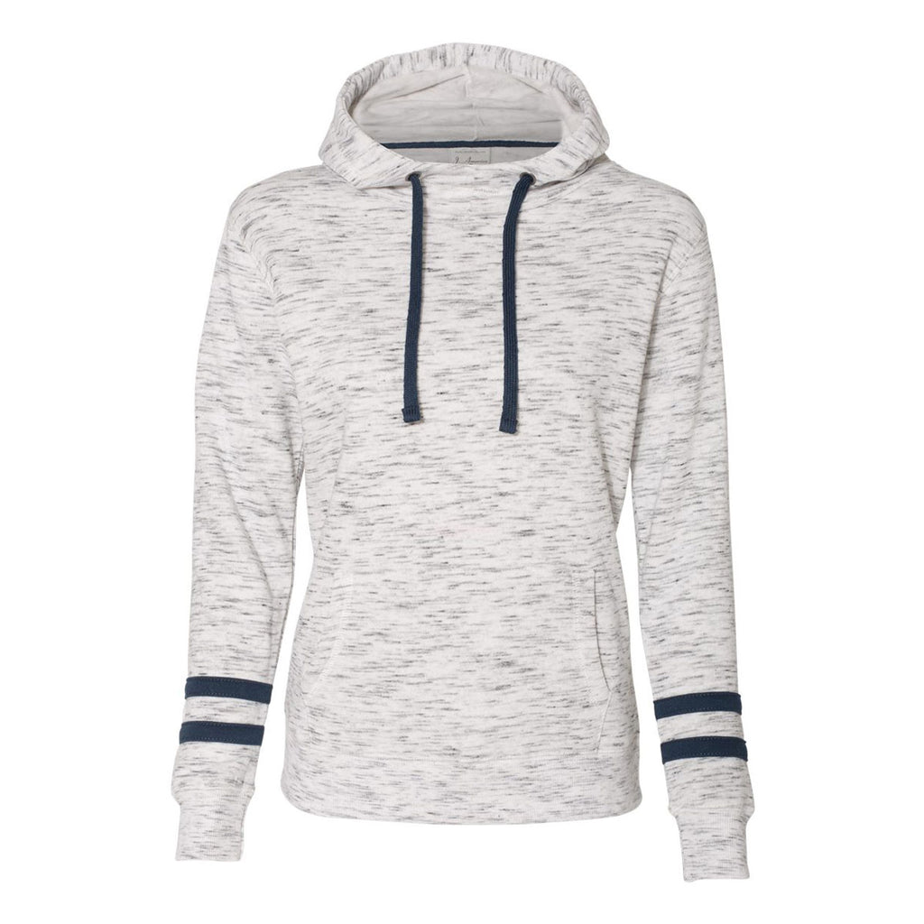 J. America Women's White/Navy Melange Fleece Striped Sleeve Hooded Pullover