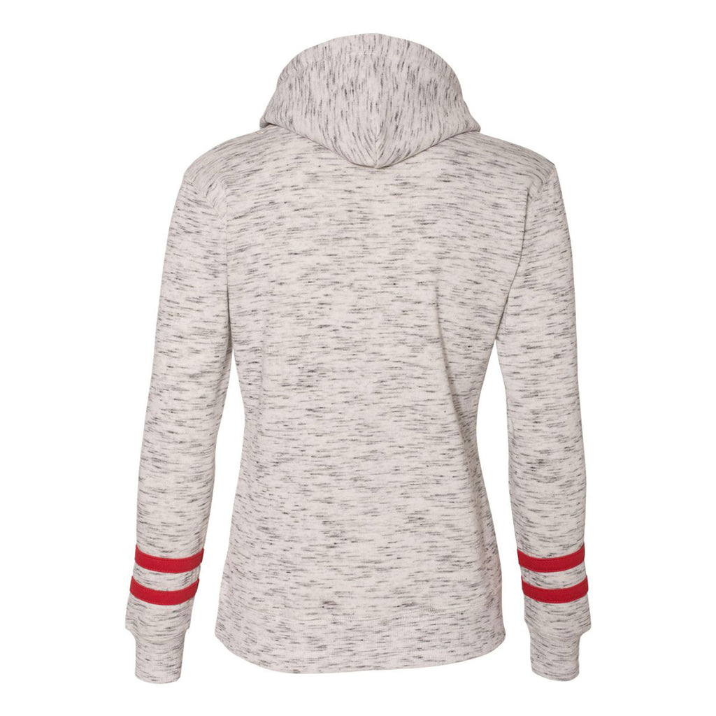 J. America Women's White/Red Melange Fleece Striped Sleeve Hooded Pullover