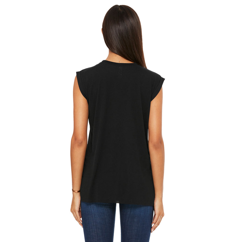 Bella + Canvas Women's Black Flowy T-Shirt with Rolled Cuff