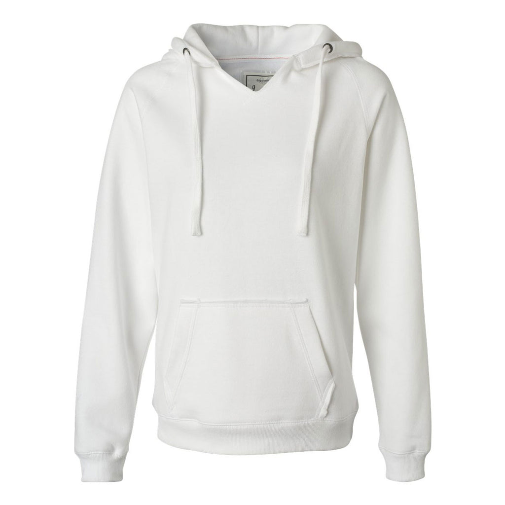 J. America Women's White Sueded V-Neck Hooded Sweatshirt