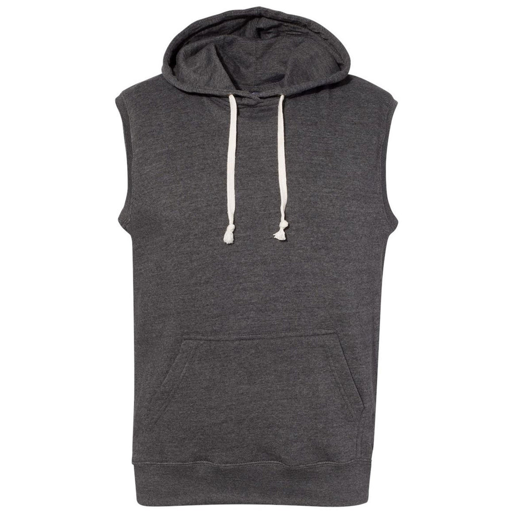 Show off in a J. America Men's Black Triblend Triblend Sleeveless Hoodie with a custom embroidery. The triblend fleece is soft and comfortable as you spend a day at the gym or just chill with friends. A set-in pouch pocket keeps small items secure whether enjoying lifting weights or a morning jog. Add a company logo to use as employee apparel at a fitness supply store or gym as a unique touch. Add a corporate logo for sponsorship of team events as needed. The fun, yet functional design is athleisure wear at its finest and perfect to pair with sweats, shorts, or jeans as needed.Highlights