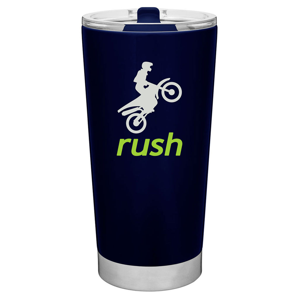 Greet your company's new employees with a logoed ETS Blue Frost Tumbler 20 oz on their desk when they arrive for their first day of work. This sleek drinkware is a practical item throughout the workday and it even can be carried on the commute to and from work, providing your company name with some outside exposure. The minimum order for this product is 48 pieces.Highlights
