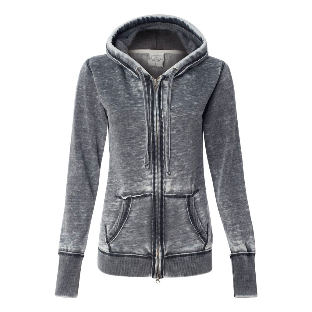 Reward the customer service professionals on your team by giving the embroidered J. America Women's Dark Smoke Zen Fleece Full-Zip Hooded Sweatshirt. Acid wash burnout fleece finished with glossy silicone will make you stand out at the next outdoor corporate event. Attach your corporate logo on the large imprint area to keep your company in the minds of the professional peers you meet at industry conventions. Blended cotton and polyester create a highly durable fabric that feels super soft on the skin. Flat lock stitching around the extra long cuffs prevents fabric fraying to ensure you remain looking sharp during competitive recreational activities.