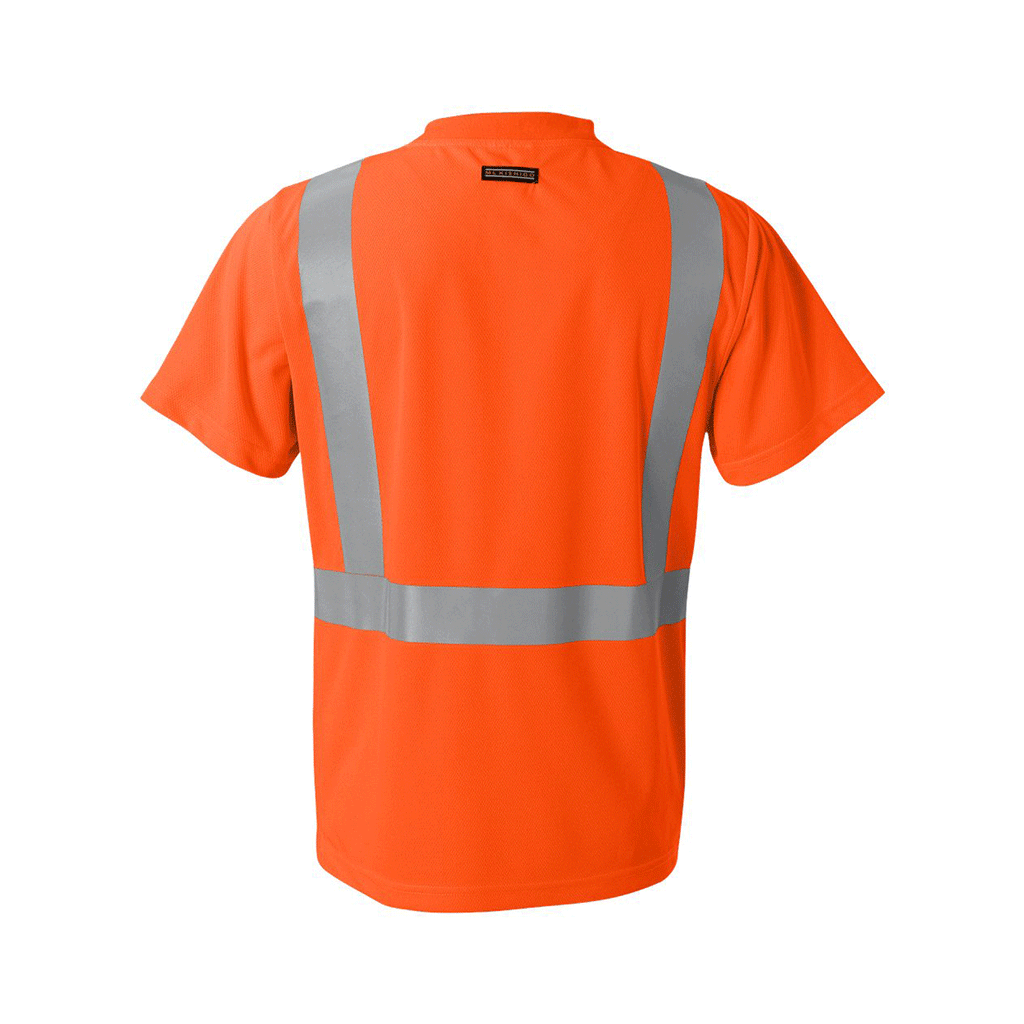 Enjoy a custom ML Kishigo Men's Orange High Performance Microfiber T-Shirt as you work your hardest. Made for performance, this microfiber polyester material wicks away moisture as you work outdoors or in volatile environments. Add a custom logo to the bright safety shirt to get noticed when working where people may overlook you. Perfect as part of employee apparel or workwear, this tee has a left chest pocket and 2 inch wide high performance reflective material for further safety. Ideal as industrial apparel for those who work in construction or related industries.Highlights
