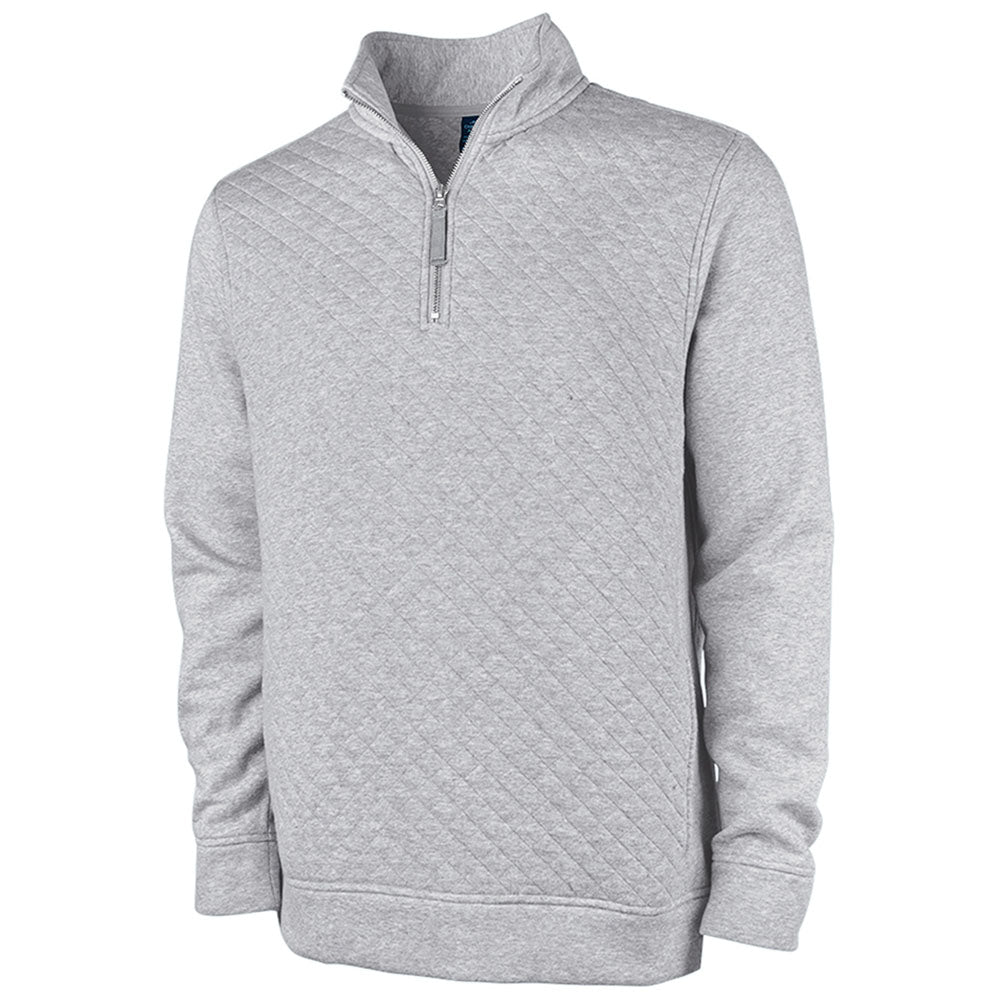 Charles River Men's Heather Grey Franconia Quilted Pullover with your custom logo design creates an easy to wear look that is highly versatile. The simple pullover with quarter-zip front has a sweatshirt design with diamond quilting. Great for outdoor fun, a morning jog, as part of a uniform, or simple daily wear.