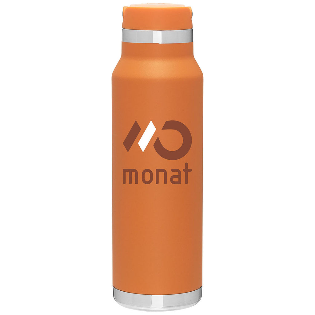 Keep your team plenty hydrated by providing them with a H2Go Matte Canyon 25 oz Voyager Bottle that displays your company or team's custom logo. The sleek design and powder coated finish give it a timeless look that will never go out of style, while copper vacuum insulation means the drink inside will always remain at an ideal temperature.