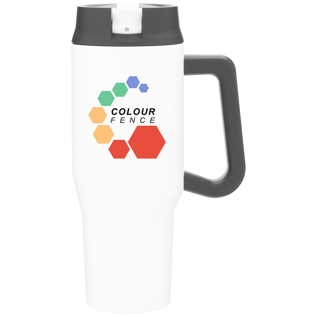 Keep your beverages at the perfect temperature all day long by using this superior ETS Matte White 32 oz Terrain Travel Mug. Great for morning commutes or long days on the road, this mug features a wide handle design for enhanced portability and includes a soft straw that slips easily into the lid's flip-up spout.