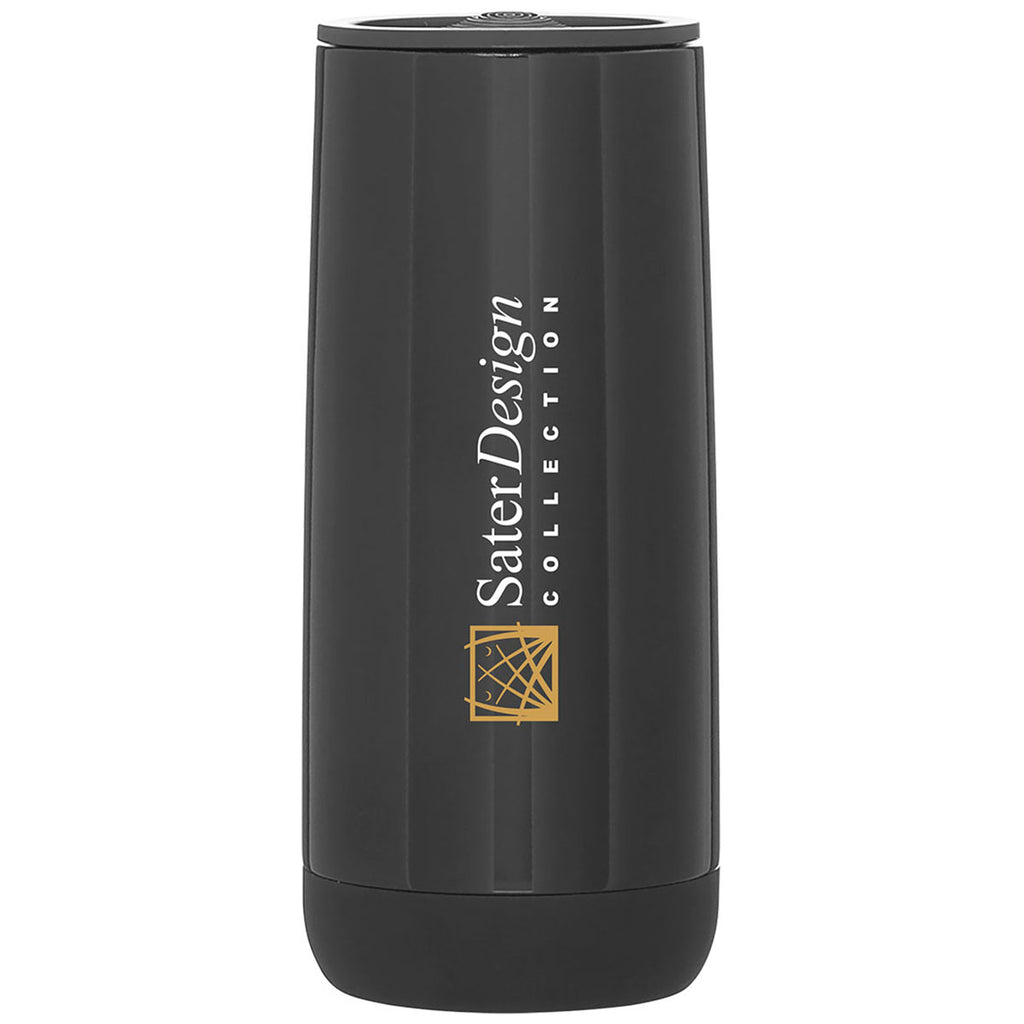 Your company's custom logo will look incredibly stylish when it's added to the ETS Black 16.9 oz Haven Tumbler. A push-on lid with magnetic swivel closure and a non-slip rubberized base makes it incredibly easy to use. A minimalist design also ensures it will show off your personalization like no other promotional item can.