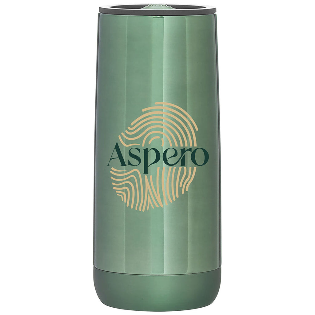 Your company's custom logo will look incredibly stylish when it's added to the ETS Envy 16.9 oz Haven Tumbler. A push-on lid with magnetic swivel closure and a non-slip rubberized base makes it incredibly easy to use. A minimalist design also ensures it will show off your personalization like no other promotional item can.