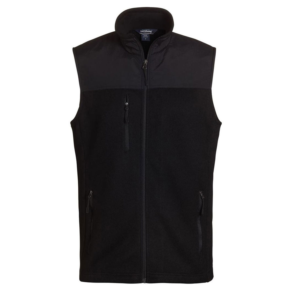 Outfit your team with the custom embroidered Landway Men's Black Captain Vest. Sweater-knit fleece traps body heat to ensure you remain comfortable throughout the day. Making this a great option to layer for added warmth. One-hundred percent rip and tear resistant polyester gives you corporate apparel that delivers high performance for years to come. The perfect vest to wear for outdoor recreational activities prevents wind and water from forcing you indoors before you are ready to call it a day. Add your company logo on the large imprint area and watch awareness of your brand soar. Your employees will be happy to promote your custom logo when it's attached to this Landway vest.