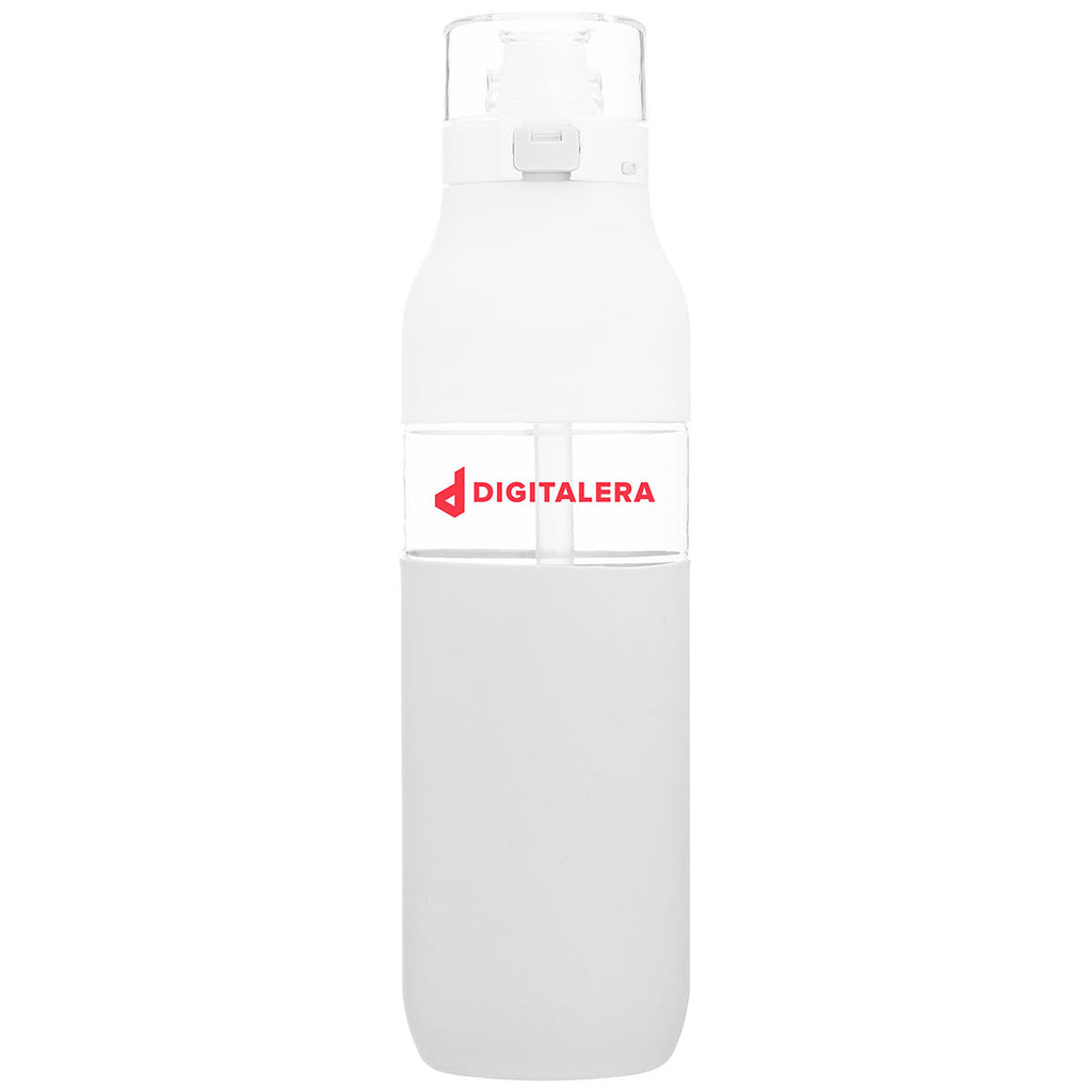 The H2Go Snow 25 oz Void Bottle features a contemporary design that will continually turn heads in a crowd. Take your brand to the next level by adding your company's custom logo to this water bottle, which includes unique extras like a silicone drinking spout, an inner soft straw, and dual silicone accents.