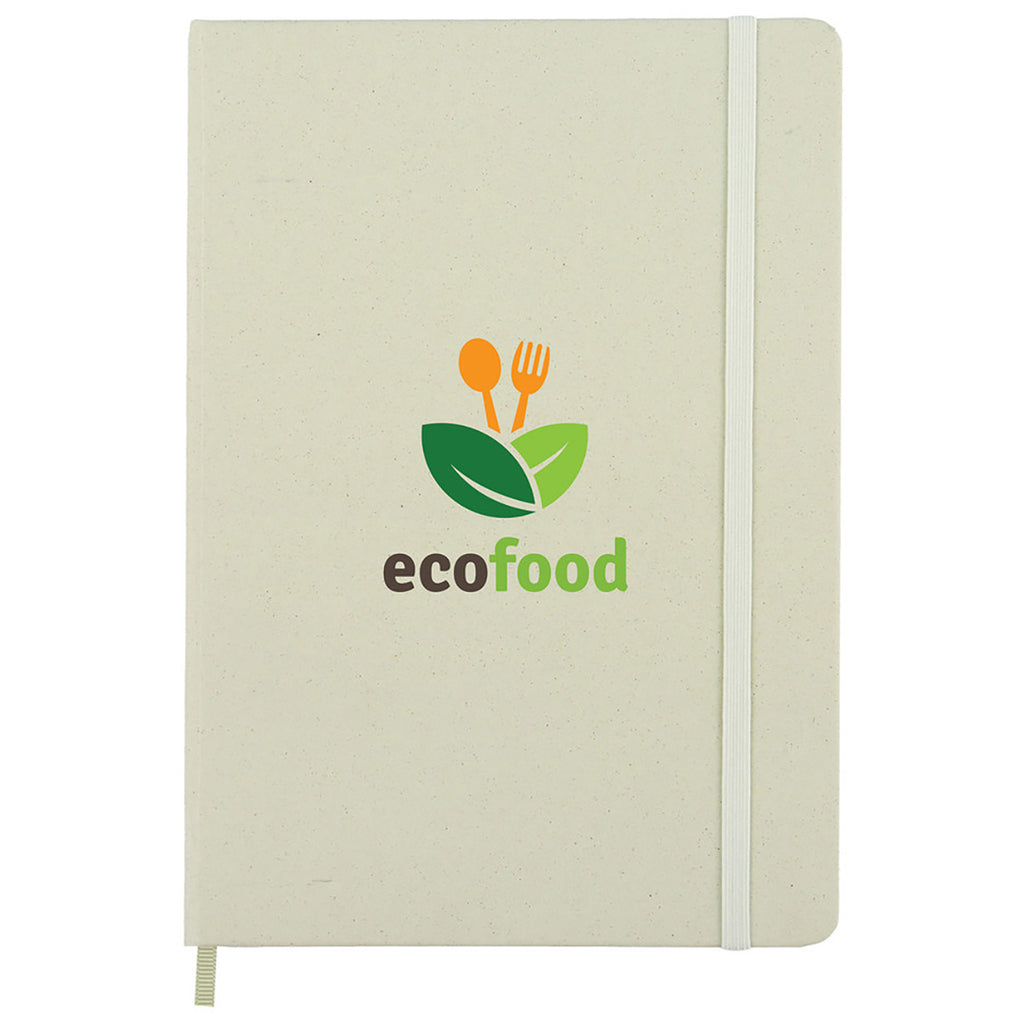 Handstands Kiwi Harvest Fruit Fiber Notebook with a custom logo is a sustainable, eco-friendly way to stay organized. The perfect binding and elastic band keep your sketches or notes secure as you go about your day. It is ideal for the office, as a journal, or for college students. Place an order today.