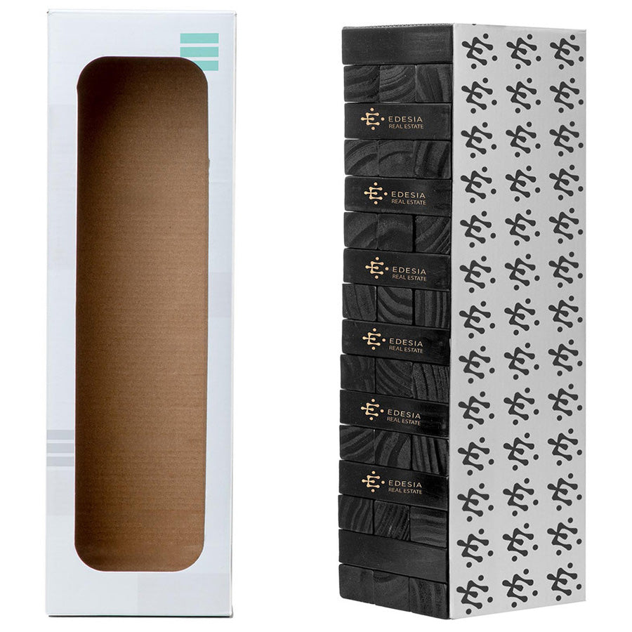 Add your corporate logo to the Origaudio Black Stack'D Up Tumble Tower Game for a fun way to get your brand recognized. This familiar wooden block tower game tests balance and strategy for endless hours of fun. A great way to break the ice, pass the time at college or enjoy a night at home. Order yours today.