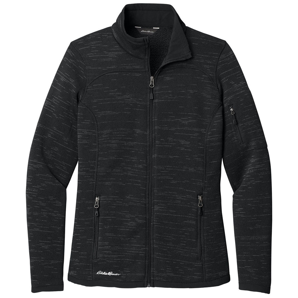 A custom outdoorsy look can be created with the Eddie Bauer Women's Black Sweater Fleece Full Zip. The easy to put on and get off full zip offers serious comfort in 100% polyester. Create a dressy casual look with the cadet collar, open cuffs, open hem, and exposed coil zippers. Add your corporate embroidery for a look that works as a company uniform or as the employee gift that everyone will love. Perfect as end of the year gifts or prizes at a corporate event, these full zip sweaters have the thing every woman wants, pockets. Choose this lightweight sweater to customize and meet your needs.
