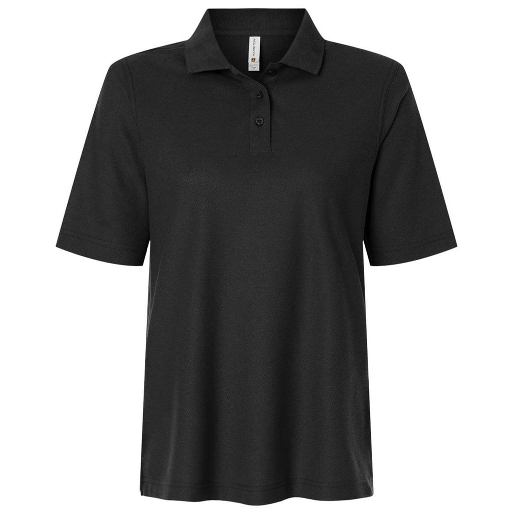 Harriton Women's Black Maverick CVC Pique Polo offers a tailored, comfortable fit, enhanced by a durable CVC blend, and is great for embroidery or corporate branding. Its breathable pique texture keeps wearers comfortable throughout the day, making it strong for office uniforms, event apparel, or retail-friendly merchandise.Corresponding Men's Style: Harriton Men's Black Maverick CVC Pique Polo