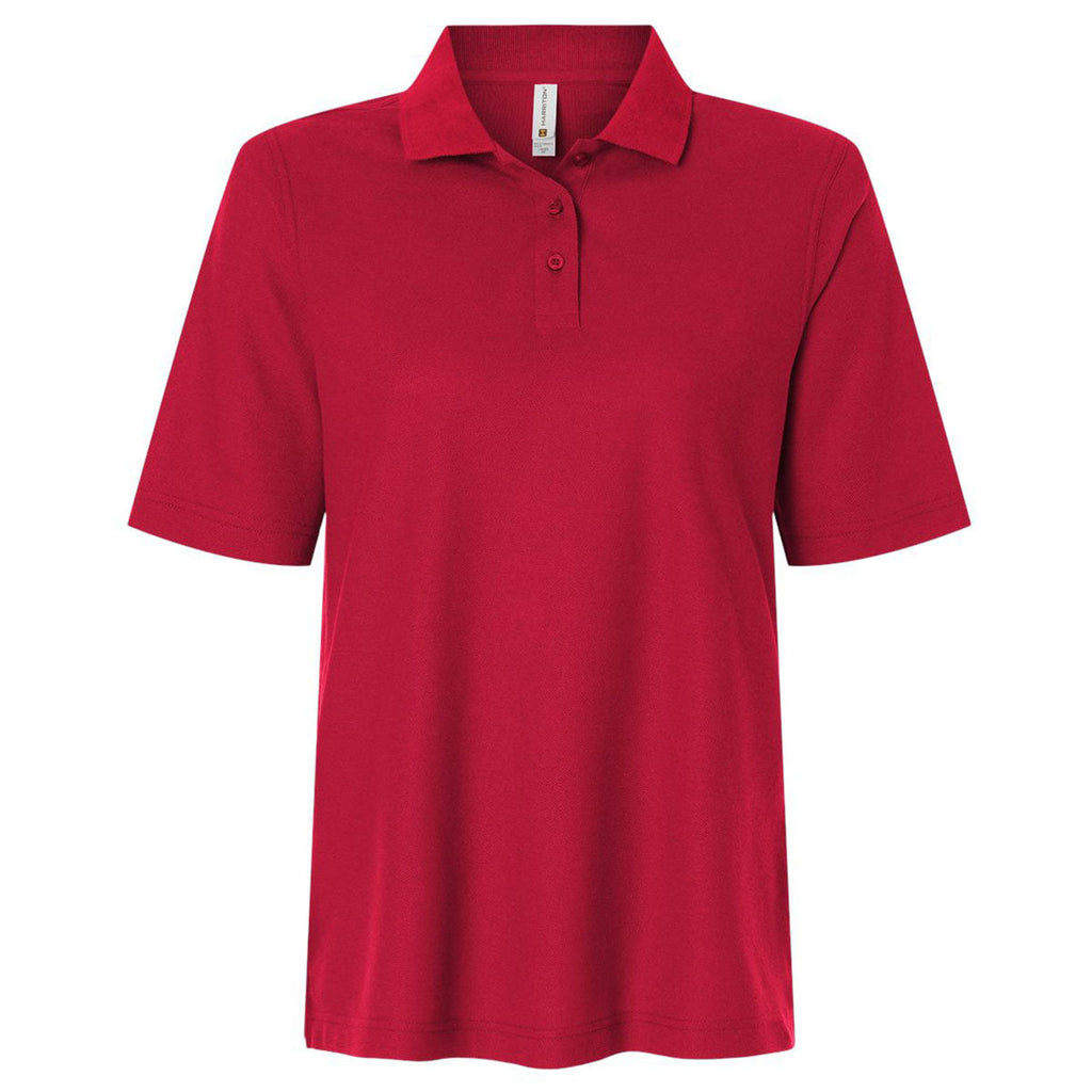 Harriton Women's Red Maverick CVC Pique Polo offers a tailored, comfortable fit, enhanced by a durable CVC blend, and is great for embroidery or corporate branding. Its breathable pique texture keeps wearers comfortable throughout the day, making it strong for office uniforms, event apparel, or retail-friendly merchandise.