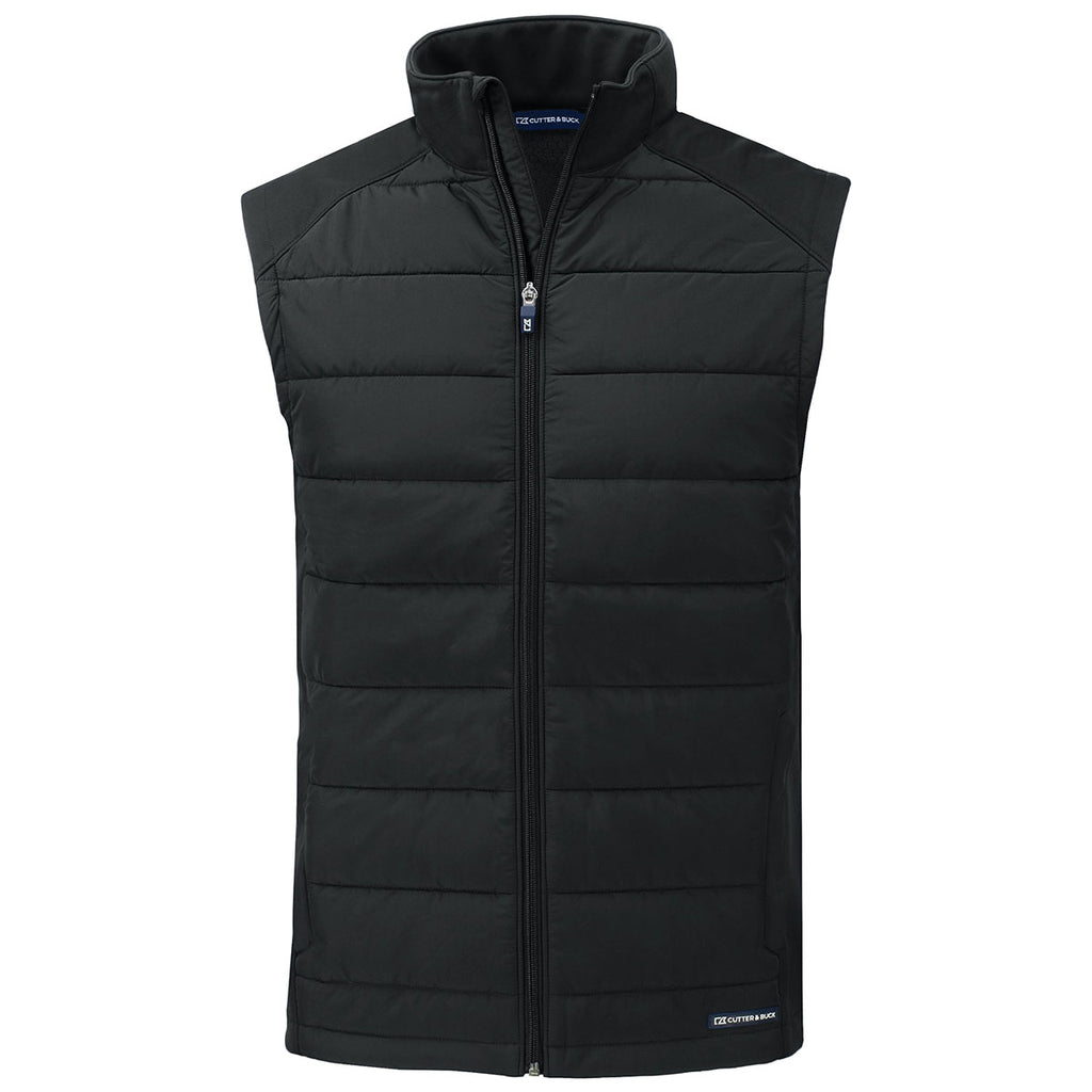 Cutter & Buck Men's Black Evoke Hybrid Eco Softshell Recycled Full Zip Vest