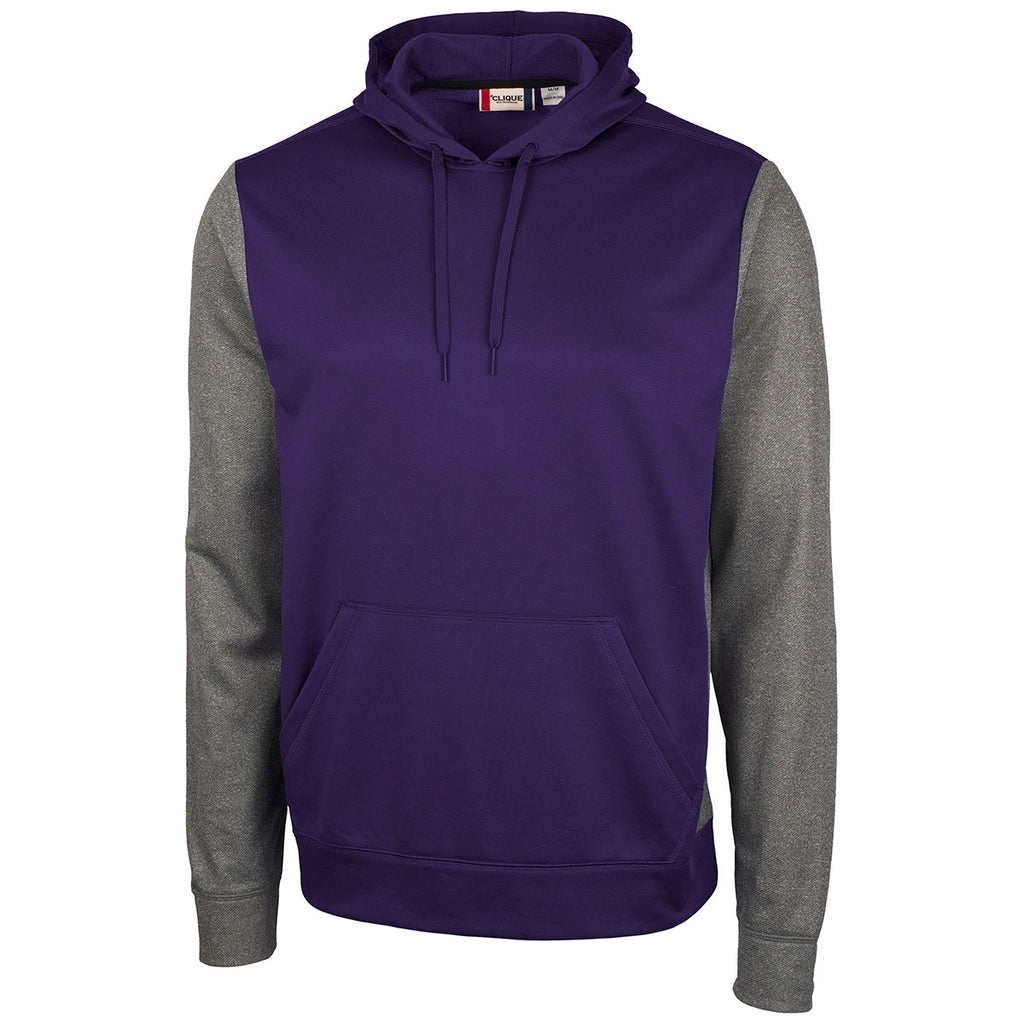 The Clique Men's College Purple Helsa Sport Colorblock Pullover combines fashion and comfort in one eye-catching pullover sweatshirt. With a custom logo added in screen print, you can turn this comfortable sweatshirt into an advertising product as well. Features include a variety of classic color options, 100% polyester fleece material, long sleeve cuffs in heather fabric, hood with drawstring, and kangaroo pocket. Purchase this item to use as prizes for corporate golf events or to hand out at recruiting events. You may want to buy some extra ones to hand out to your loyal employees, too.Corresponding Women's Style:Clique Women's College Purple Helsa Sport Colorblock Pullover