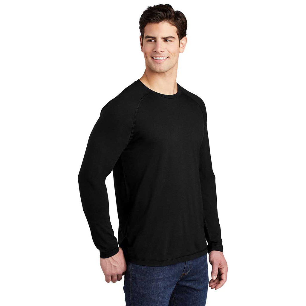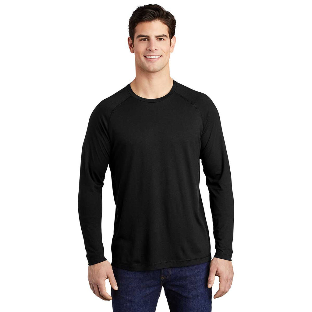 Sport-Tek Men's Black Triad Solid PosiCharge Long Sleeve Tri-Blend Wicking Raglan Tee