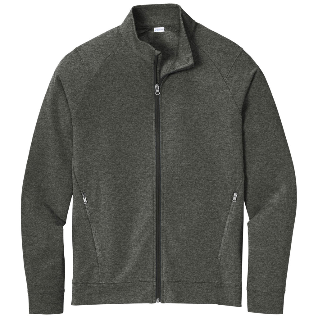 Create a custom logo for the Sport-Tek Men's Dark Grey Heather Sport-Wick Flex Fleece Full-Zip made of a poly, rayon, spandex blend that offers some stretch. The lightweight full zip has moisture wicking properties to keep you dry whether going for a morning jog or spending hours in the gym. Add embroidery to the full zip with cadet collar, self-fabric cuffs and hem, and zippered side pockets to create a convenient option for fun sports wear. Add a company logo to use as employee gifts or uniforms for those who work in the health improvement world.Corresponding Women's Style:Sport-Tek Women's Dark Grey Heather Sport-Wick Flex Fleece Full-Zip