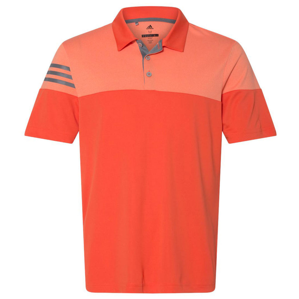 adidas Golf Men's Blaze Orange/Vista Grey Heather 3-Stripe Block Sport Shirt