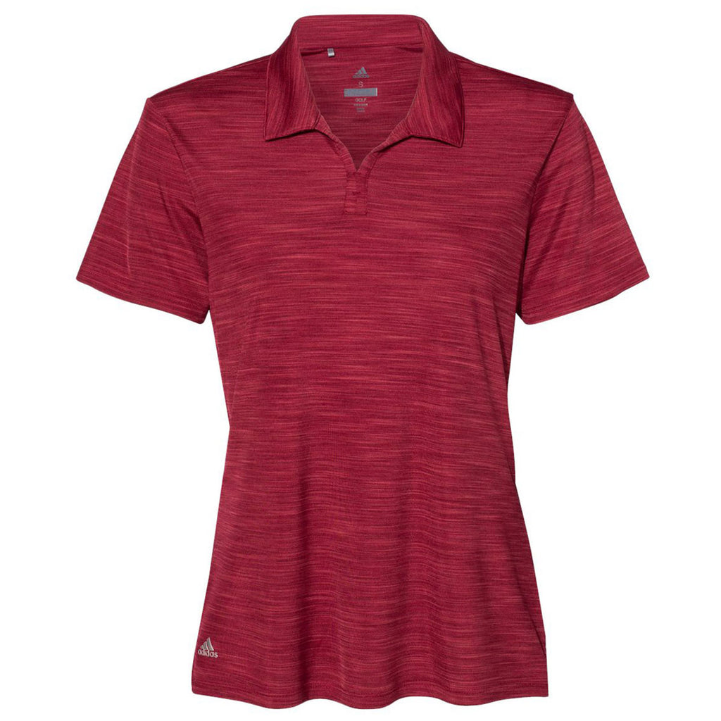 Make a custom statement with the Adidas Women's Collegiate Burgundy Melange Sport Polo in a range of colors and sizes. Created from 100% recycled polyester with striated heather interlock, this polo is a must have for both home and office. Add a custom logo to use as employee apparel that will look good and be easy to wear during long work hours. A self collar with fashion V-neck placket adds a bit of style to the polo design and the contrast Adidas logo on the right hip screams quality. A corporate embroidery allows this to be an option for corporate apparel whether paired with a jacket or worn alone as a statement piece.
