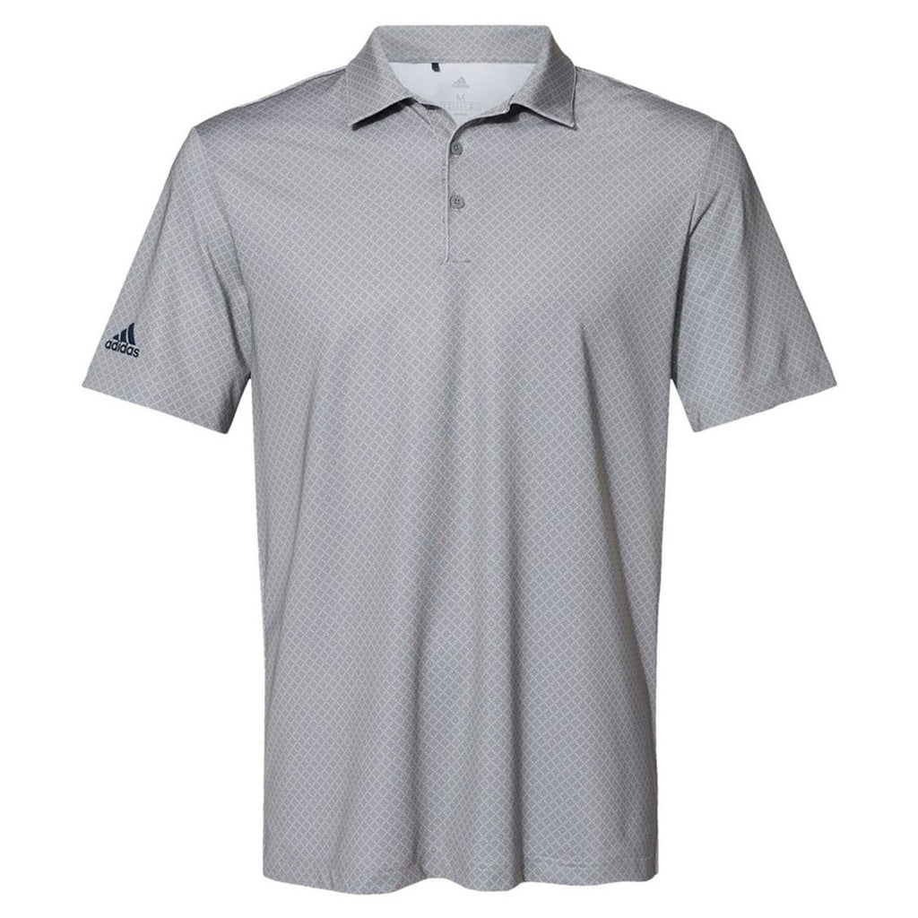 Enjoy a custom look with the Adidas Men's Grey Three/Team Royal/Navy Diamond Dot Print Sport Shirt. A great sport shirt is a welcomed addition to any wardrobe and this unique dot print shirt is no exception. Add a company logo to serve as employee apparel or uniforms that are clean, crisp, and offer a classic look. Made of a recycled polyester and elastane blend this sport shirt has moisture management properties and a hydrophilic finish. The self collar and three button placket keeps the look professional and the UPF 50+ keeps you protected whether in the boardroom or on the back nine.