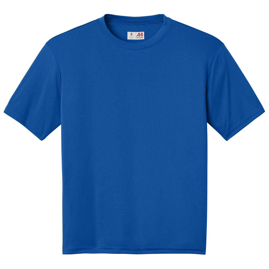 Keep cool with the A4 Men's Royal Cooling Performance Short Sleeve Tee. Built with moisture-wicking fabric, this tee is designed for workouts, sports, or active jobs. Customize it with your logo to create branded apparel that's functional and comfortable. Its lightweight design makes it a reliable choice for corporate promotions or team uniforms.Corresponding Women's Style: A4 Women's Royal Cooling Performance Short Sleeve Tee