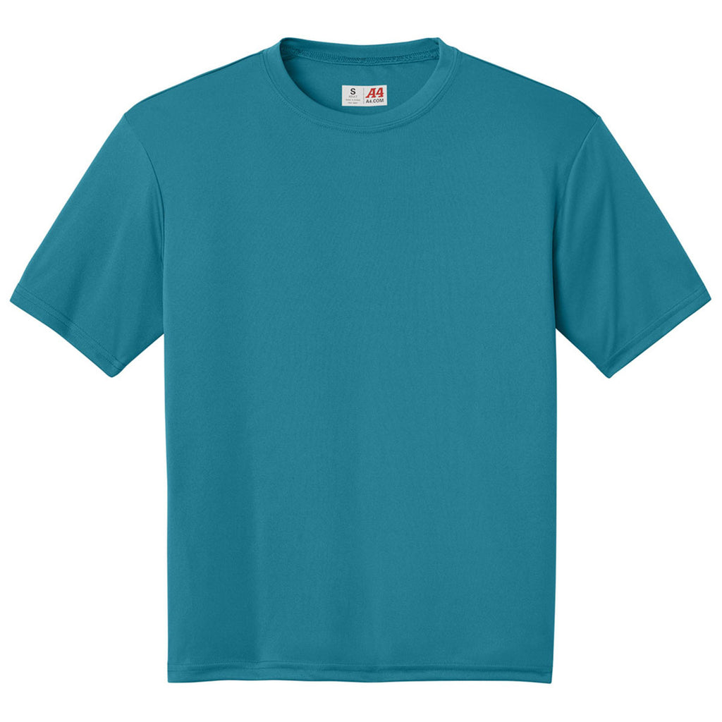 Keep cool with the A4 Men's Teal Cooling Performance Short Sleeve Tee. Built with moisture-wicking fabric, this tee is designed for workouts, sports, or active jobs. Customize it with your logo to create branded apparel that's functional and comfortable. Its lightweight design makes it a reliable choice for corporate promotions or team uniforms.Highlights