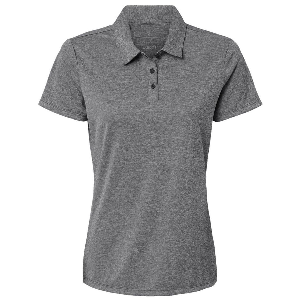 Add embroidery to the Adidas Women's Black Melange Heathered Polo for a soft yet refined look that is just as comfortable on the sales floor as on the tennis court. This classically styled polo with a three-button placket has the contrast Adidas logo on the right hip to demonstrate quality. Give it as a gift or add it to your logoed apparel line.This product cannot ship outside of the United States
