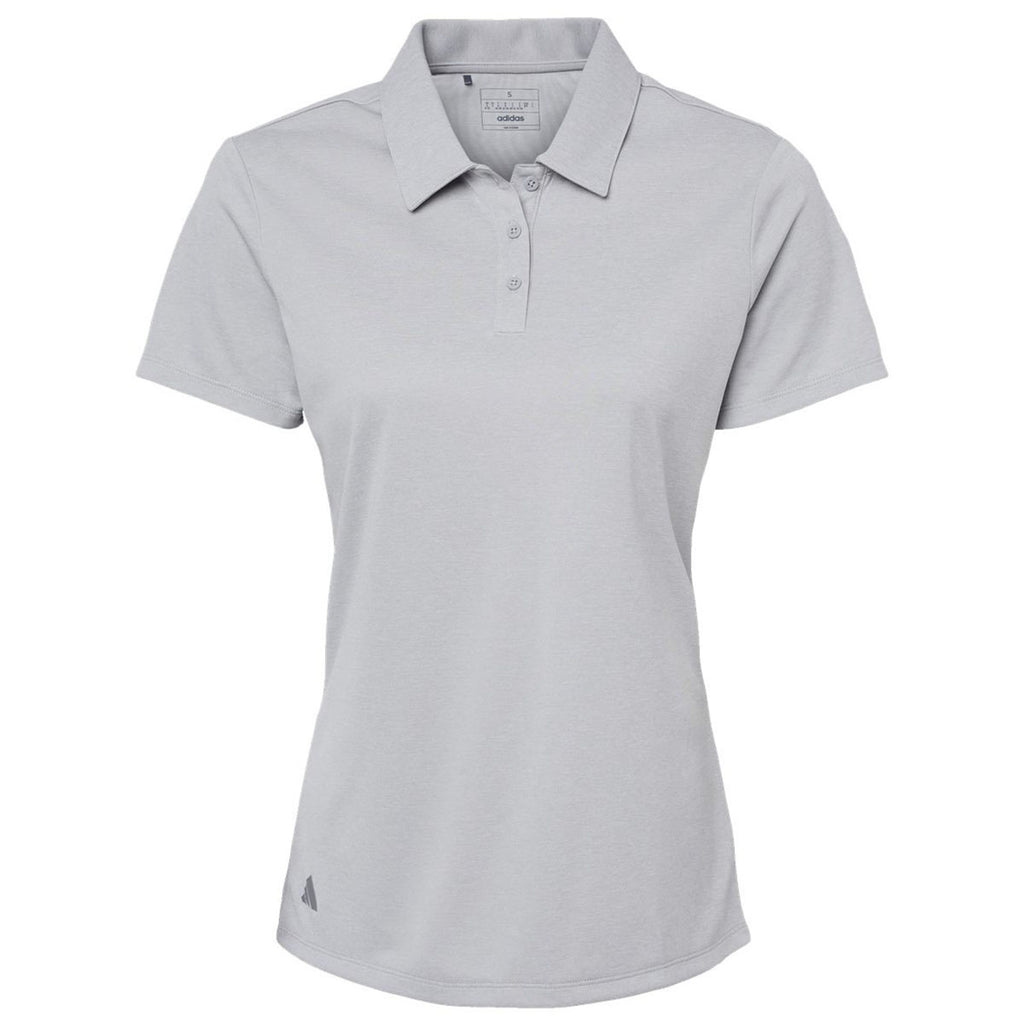 Add embroidery to the Adidas Women's Grey Two Melange Heathered Polo for a soft yet refined look that is just as comfortable on the sales floor as on the tennis court. This classically styled polo with a three-button placket has the contrast Adidas logo on the right hip to demonstrate quality. Give it as a gift or add it to your logoed apparel line.This product cannot ship outside of the United States
